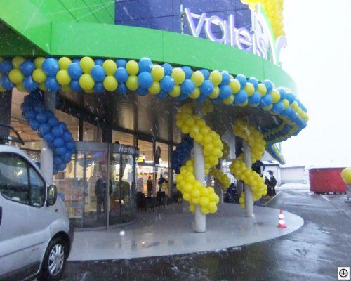 Als Dekoration an der Fassade, Balkon oder unter der Decke im Saal verschönern Ballongirlanden das Ambiente.