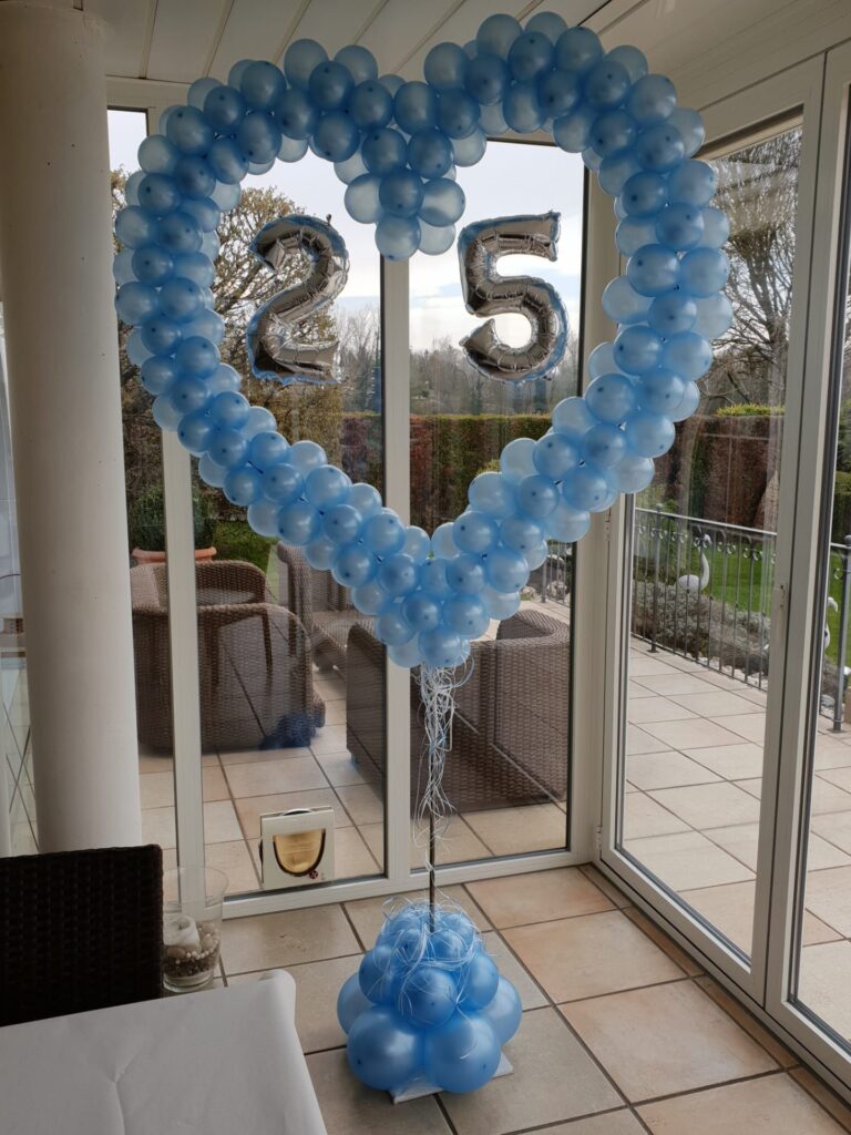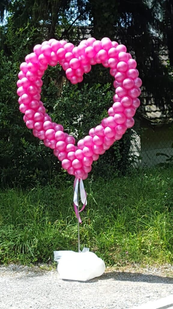 Mehrere Ballongruppen unterschiedlicher Größe und in diversen Farben werden zu einem Herz zusammengefügt.