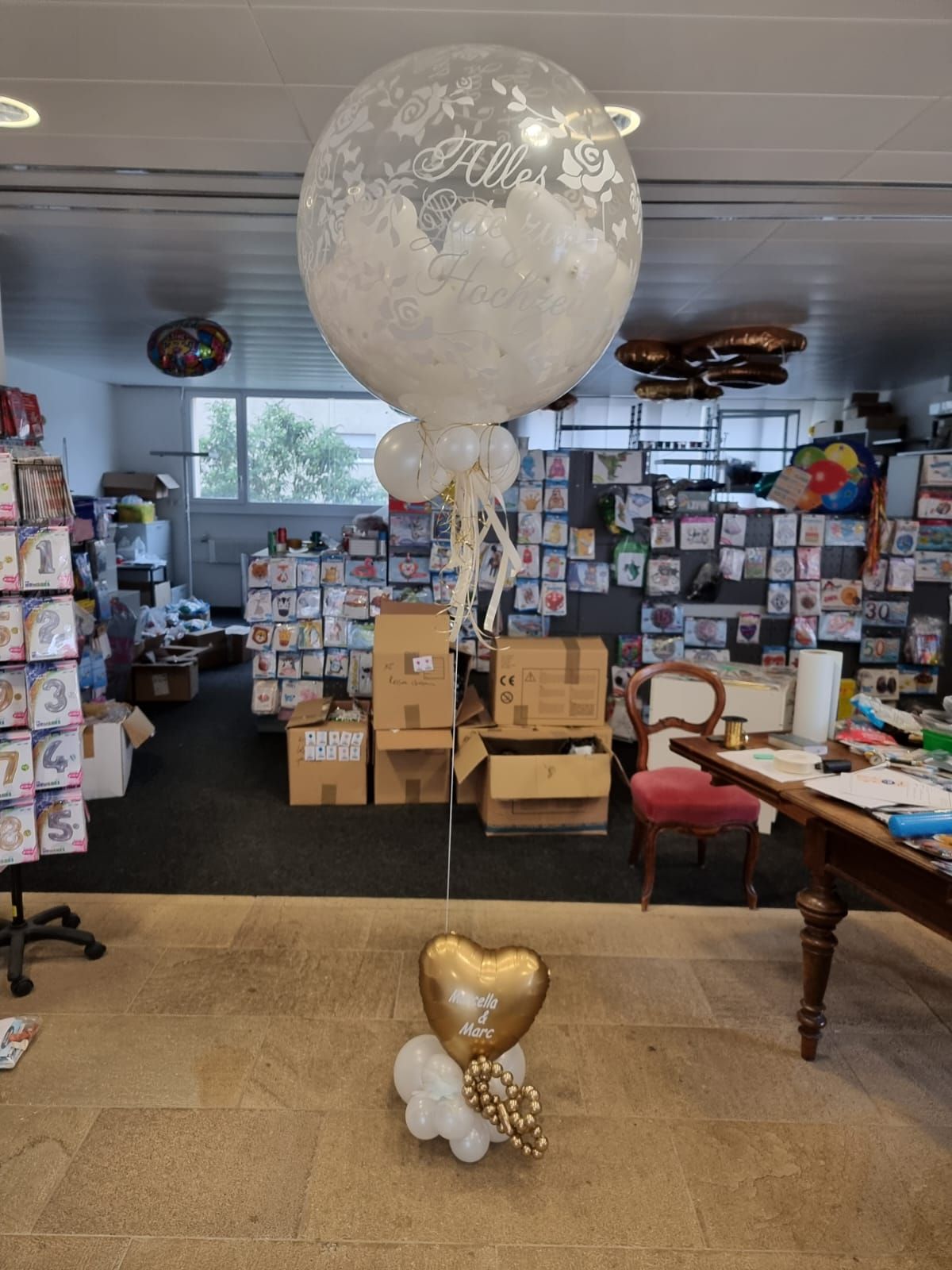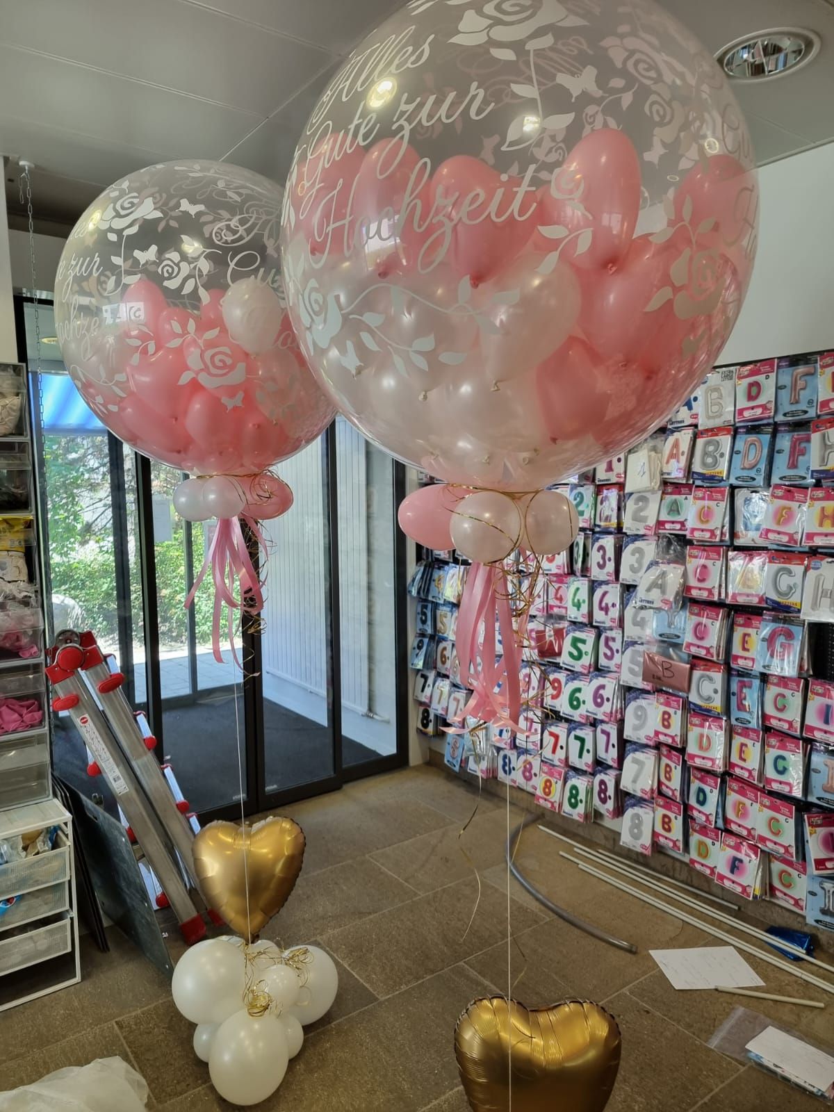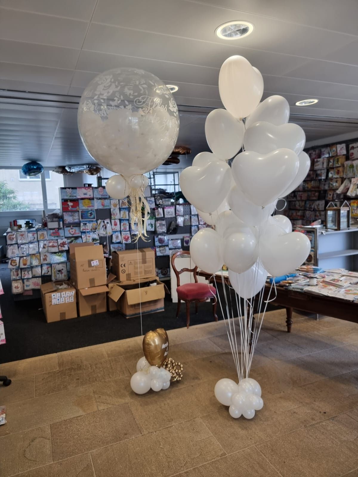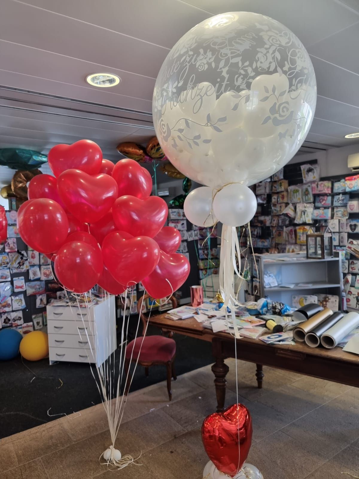 Ballongrösse: Ø 80 cm befüllt mit 50 Kleinballons in Herz- oder Rundform